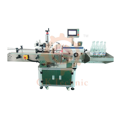 下面來(lái)看一下對(duì)圓瓶貼標(biāo)及旁邊面打碼貼標(biāo)的全自動(dòng)立式圓瓶貼標(biāo)機(jī)的設(shè)備圖片: